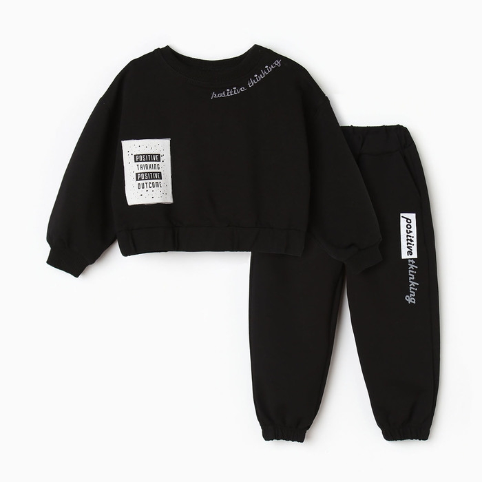 Комплект для девочки (свитшот, брюки), цвет чёрный, рост 116 см