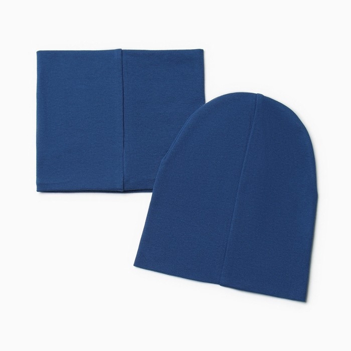 Комплект для мальчика (снуд и шапка), цвет индиго, размер 46-50