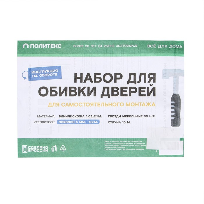 Комплект для обивки дверей 110 × 205 см: иск.кожа, поролон 5 мм, гвозди, струна, терракот, «Рулон»