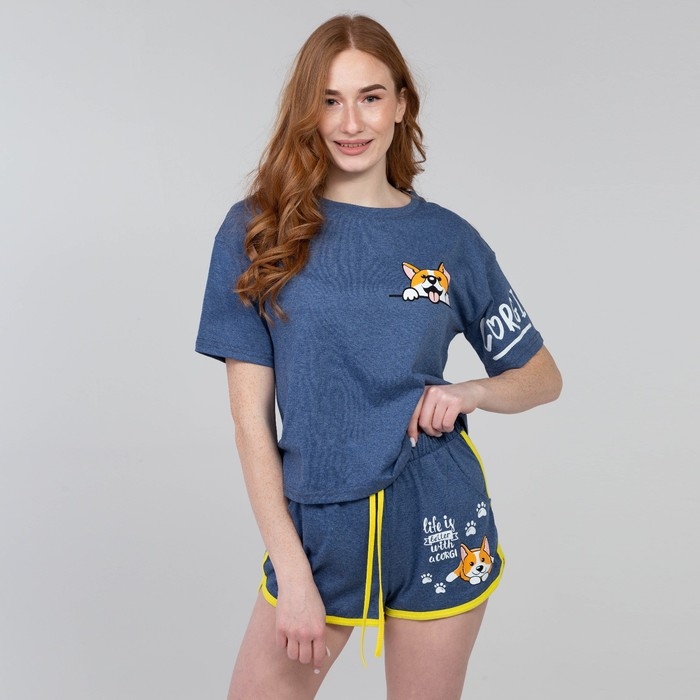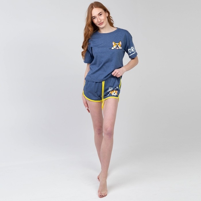 Комплект домашний (футболка/шорты) женский, цвет синий, размер 52