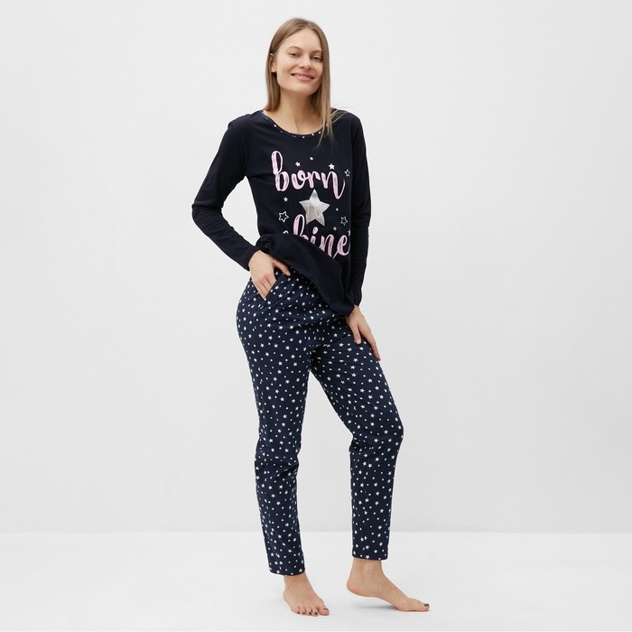 Комплект домашний женский (джемпер и брюки), цвет темно-синий, размер 46