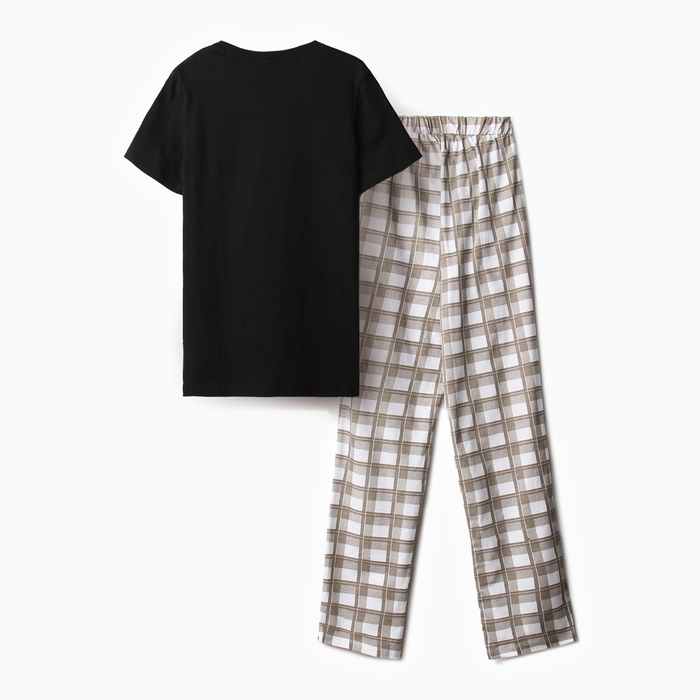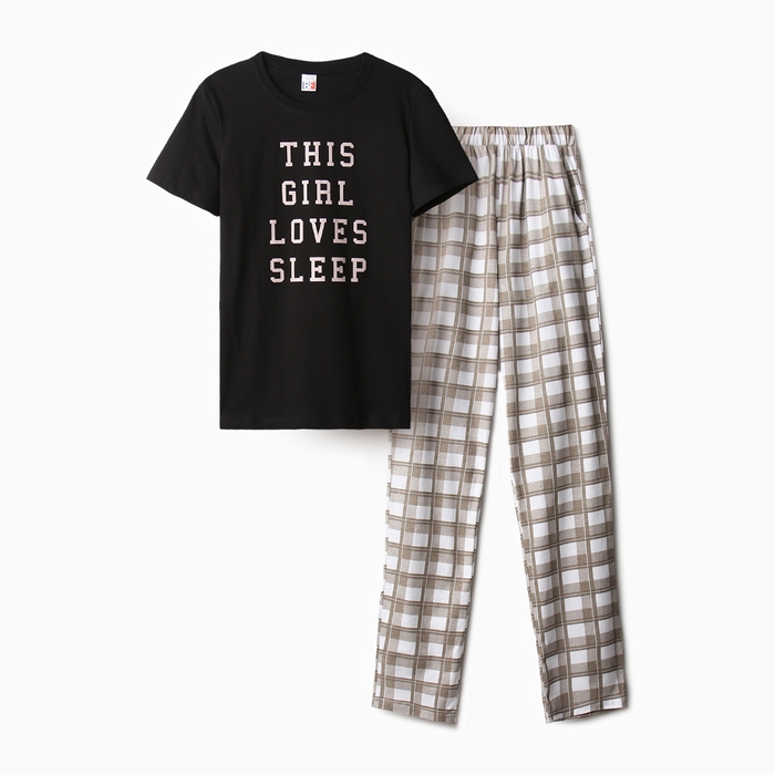 Комплект домашний женский (футболка,брюки), цвет черный, размер 50