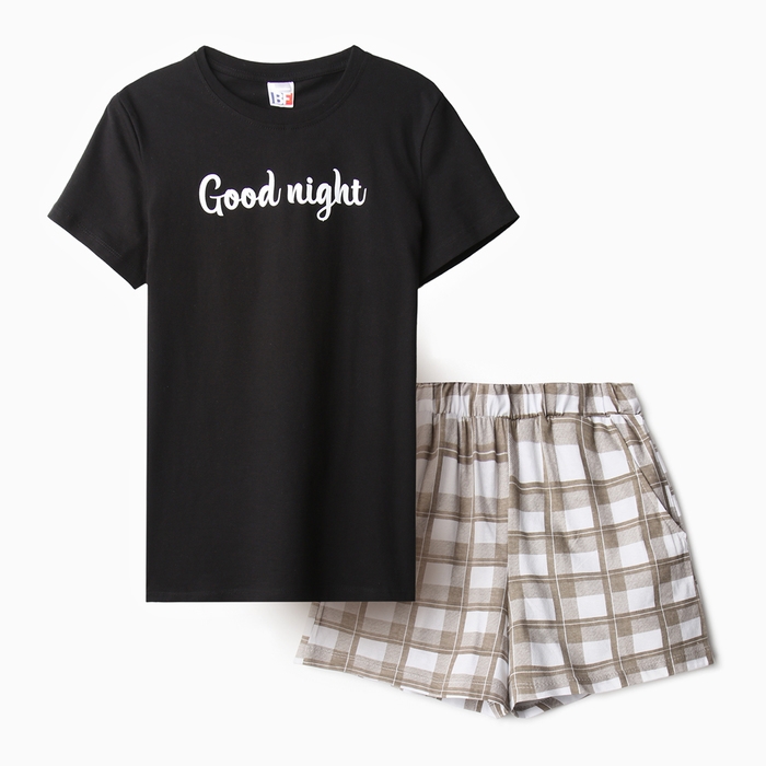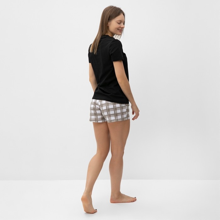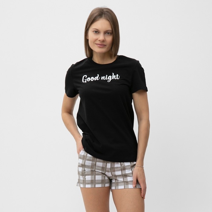 Комплект домашний женский (футболка,шорты), цвет черный, размер 44