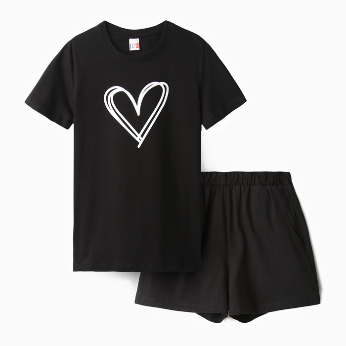 Комплект домашний женский (футболка,шорты), цвет черный, размер 50