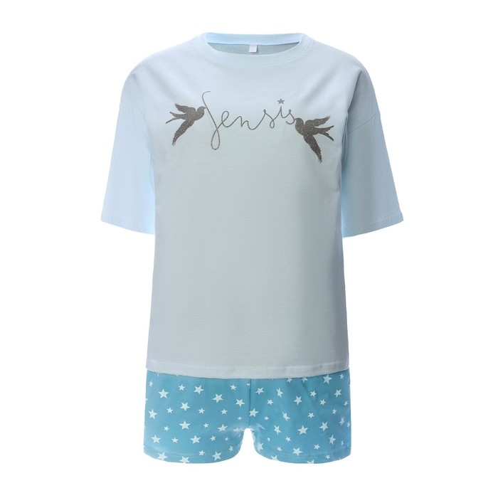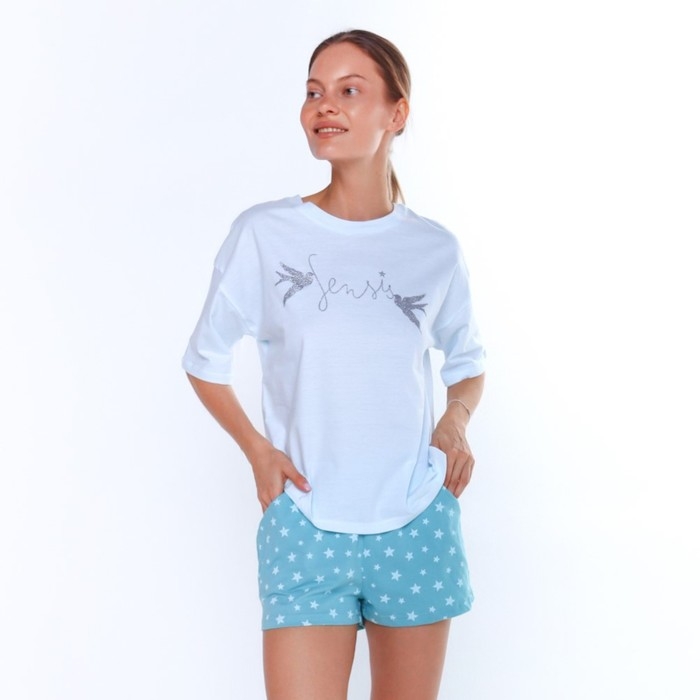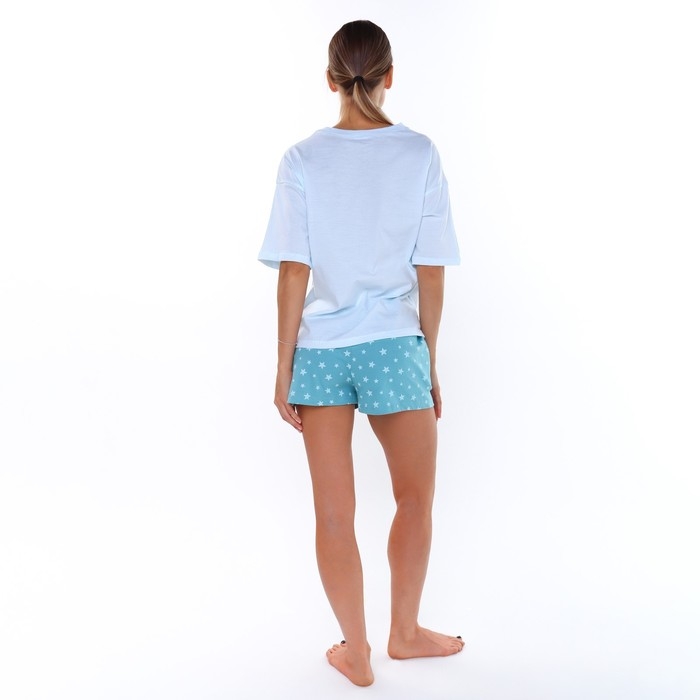 Комплект домашний женский (футболка/шорты), цвет голубой, размер 48