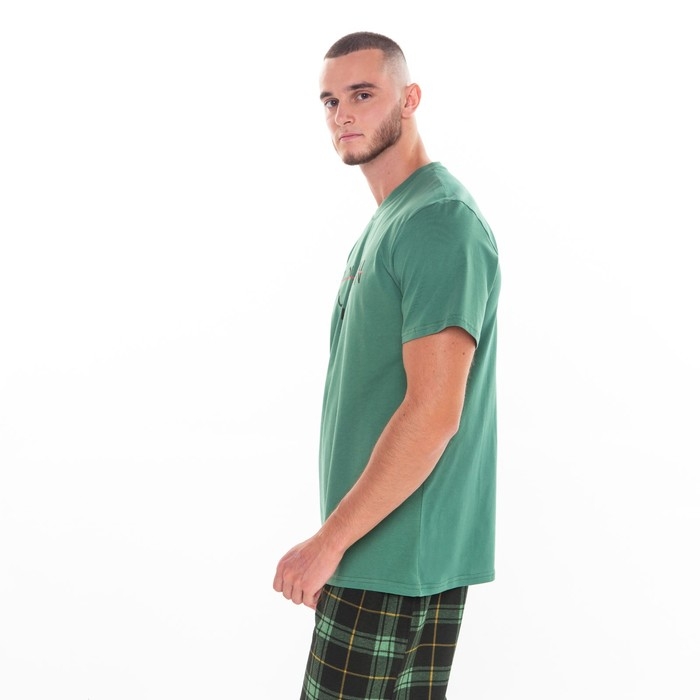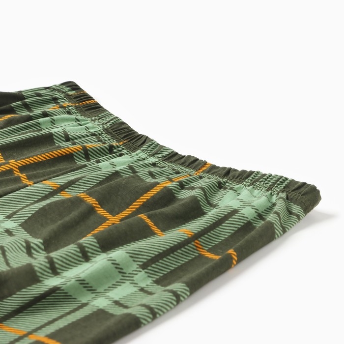 Комплект (футболка/брюки) мужской, цвет зеленый/клетка, размер 48