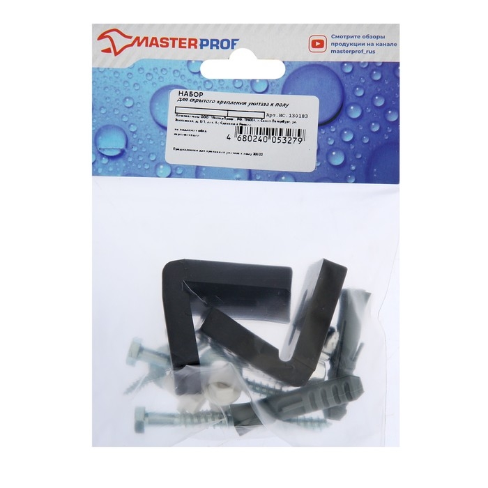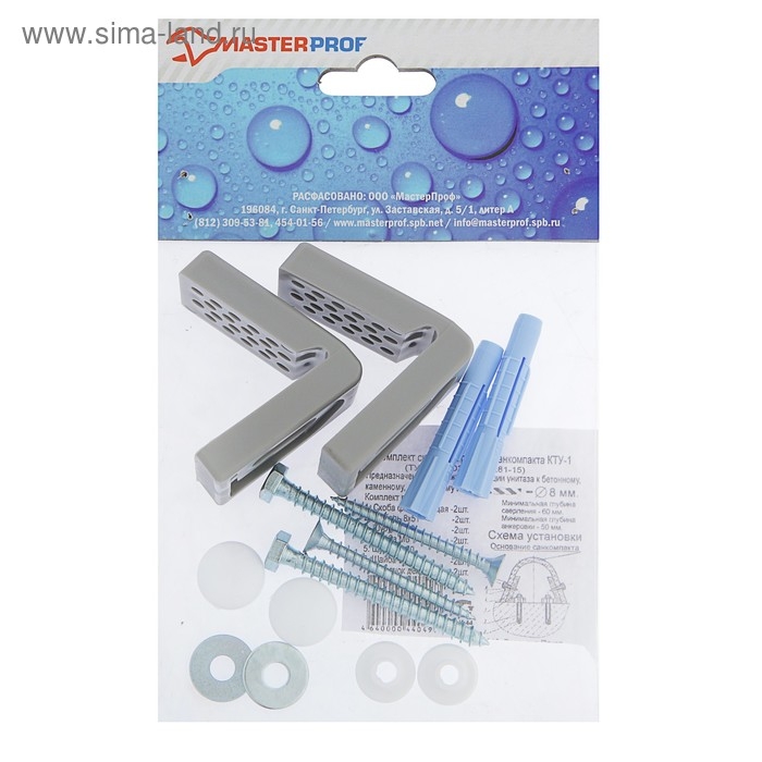Набор крепления унитаза к полу MasterProf предназначен для скрытой фиксации унитаза к бетону, полнотелому кирпичу или камню. Крепеж изготовлен из пластика и стали.