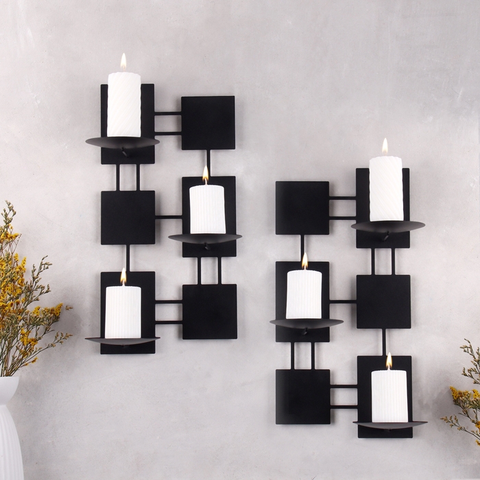 Комплект подсвечников настенных "Модерн" 2шт, 23х40,5х14,5см, чёрный