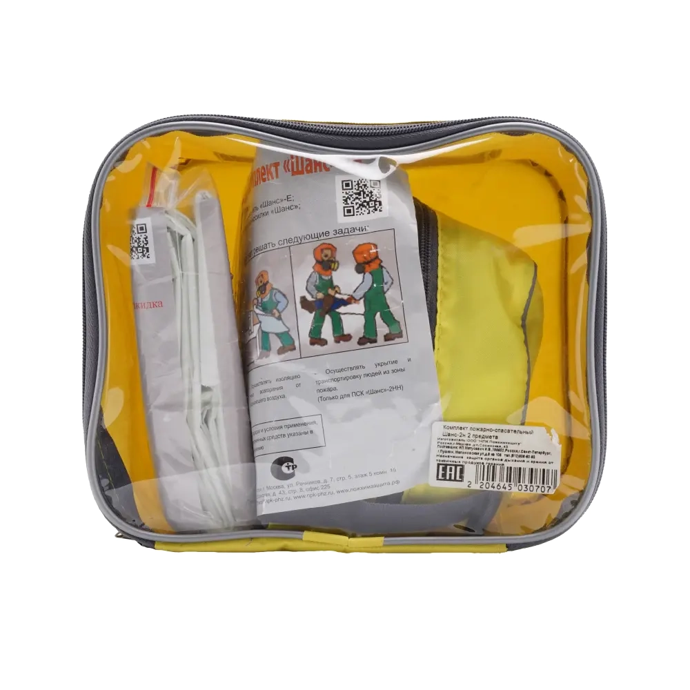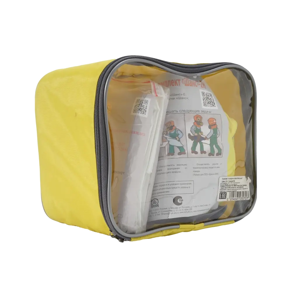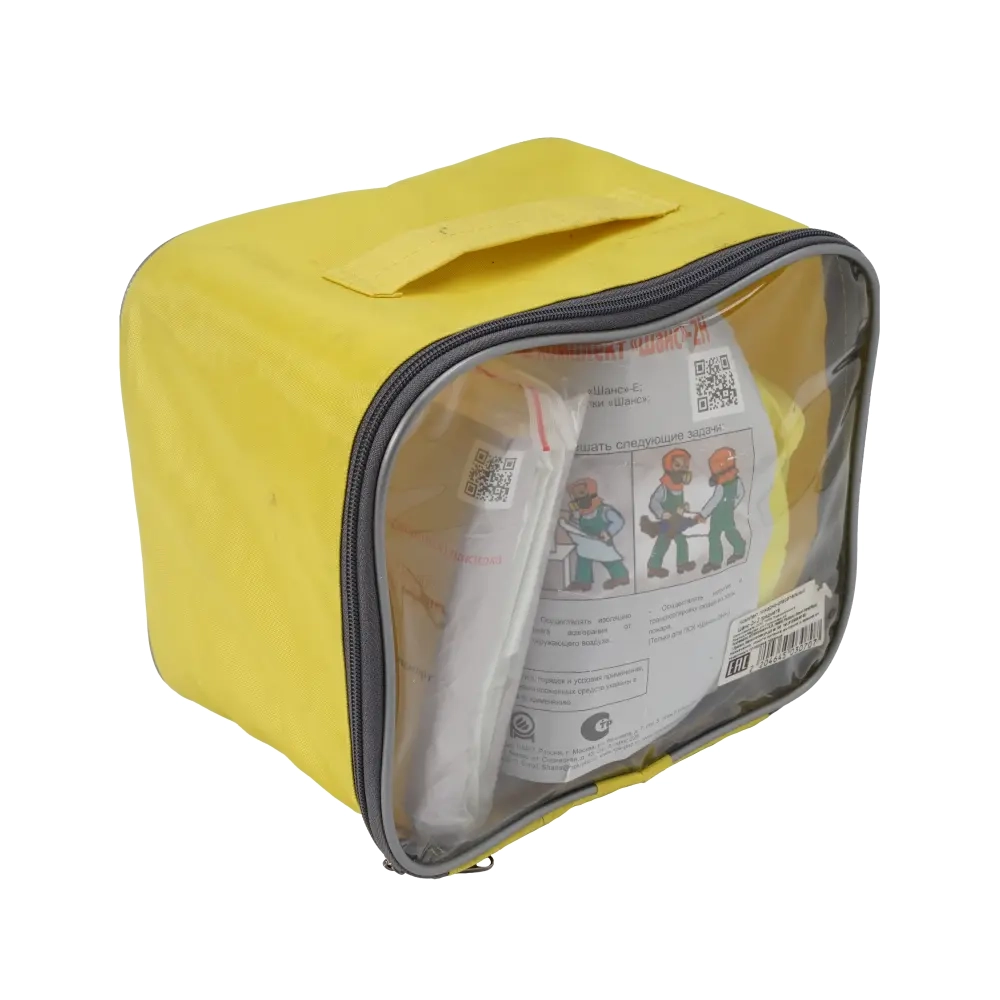 Компактно сформированный комплект обеспечивает удобство хранения и позволяют комплексно и максимально эффективно использовать средства индивидуальной защиты в условиях воздействия открытого пламени и сильного задымления. Самоспасатель "Шанс" в комплекте предназначен для защиты органов дыхания и зрения от токсичных продуктов горения при эвакуации из задымленных помещений во время пожара, а также от других опасных химических веществ (паров, газов и аэрозолей), в случае техногенных аварий и террористических актов, а накидка "Шанс" для предотвращения возгорания одежды, защиты от открытого пламени, теплового излучения и изоляции очага возгорания от окружающего воздуха.