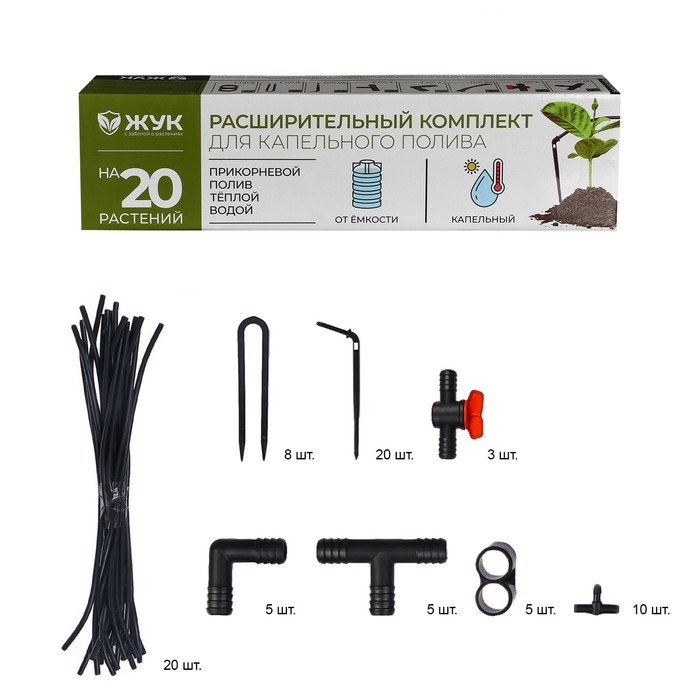 Комплект расширительный для капельного полива от ёмкости, на 20 растений, «Жук»
