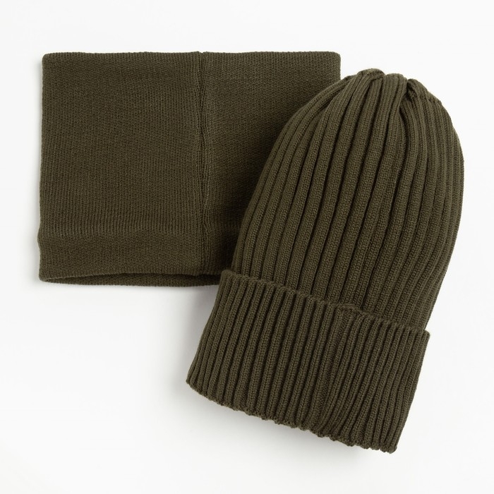 Комплект (шапка,снуд) детский, цвет хаки, размер 52-56