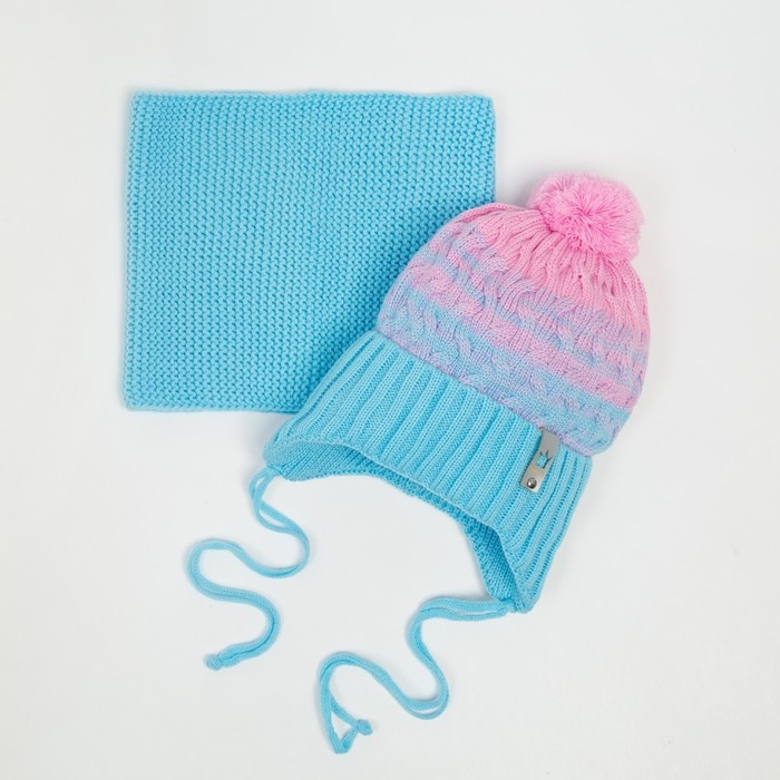 Комплект (шапка/снуд) для девочки, цвет голубой размер 47-50 см