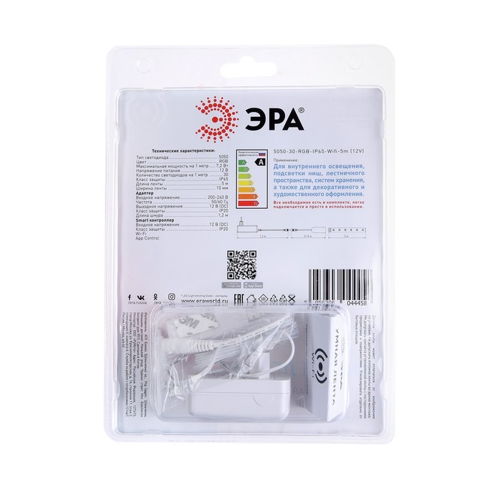 Комплект светодиодной ленты «Эра» 5 м, IP65, SMD5050, 30 LED/м, 12 В, Wi-Fi, RGB