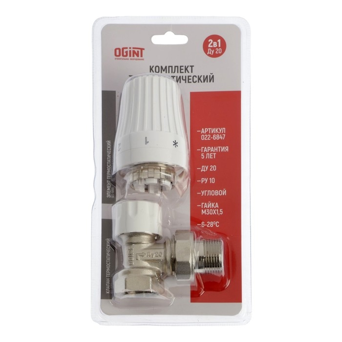 Комплект термостатический Ogint, для радиатора, 2в1, угловой, 3/4", PN10, М30х1.5, 6-28°С
