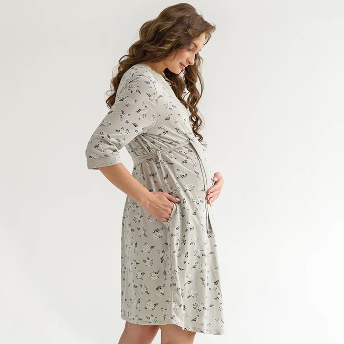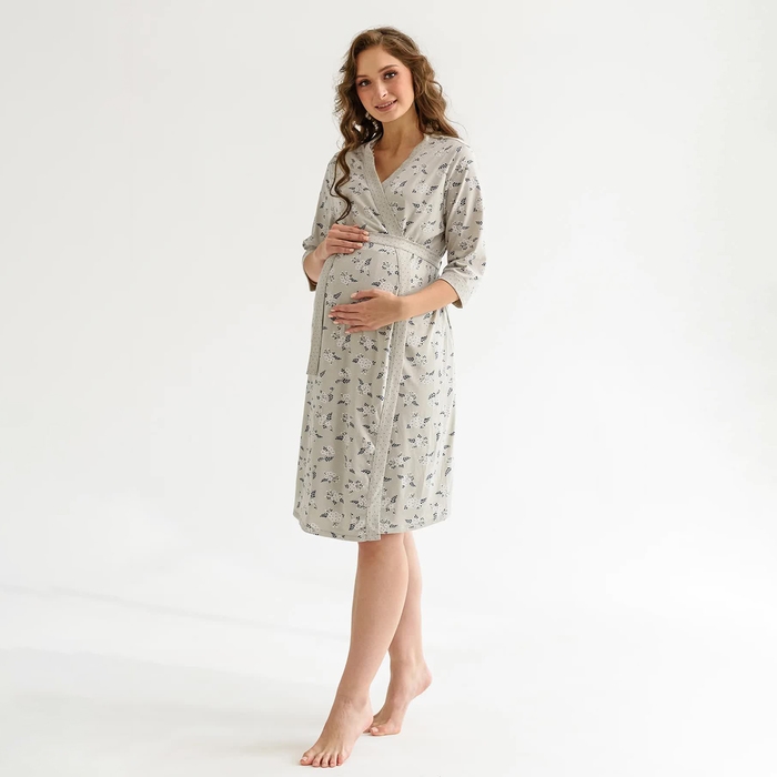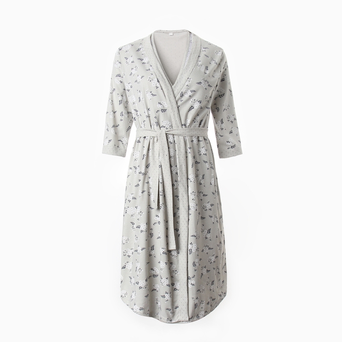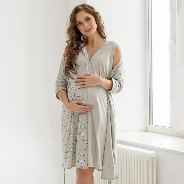 Комплект женский для беременных (сорочка/халат), цвет серый, размер 52