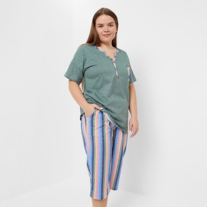 Комплект женский домашний (футболка/бриджи), цвет олива, размер 54