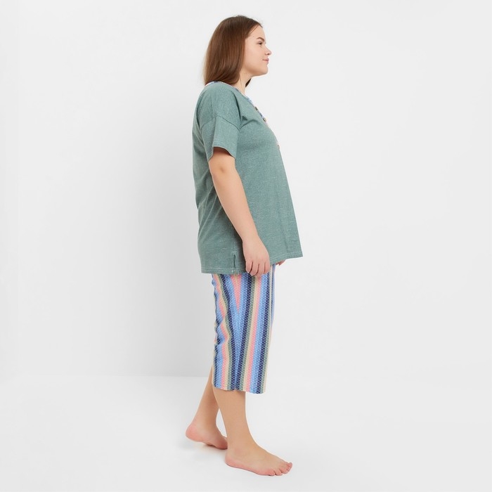 Комплект женский домашний (футболка/бриджи), цвет олива, размер 60
