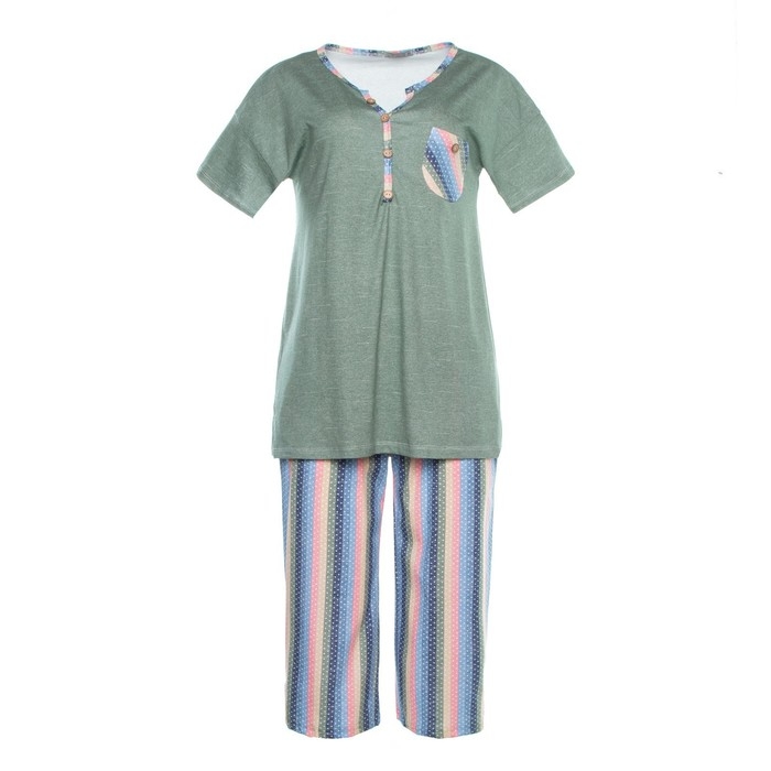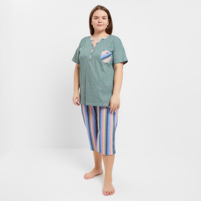 Комплект женский домашний (футболка/бриджи), цвет олива, размер 62