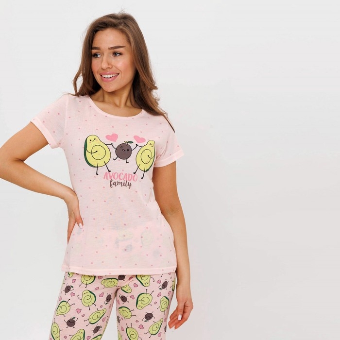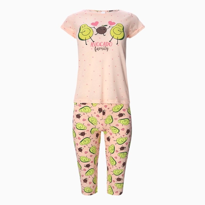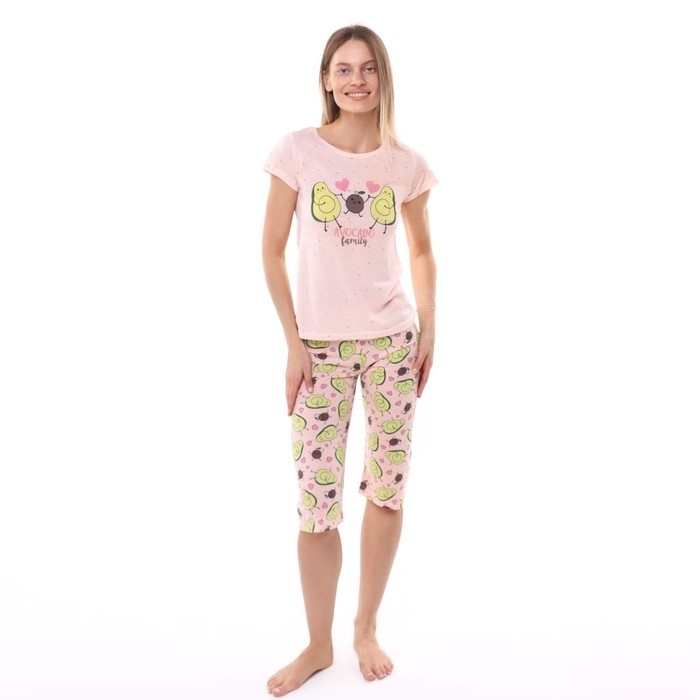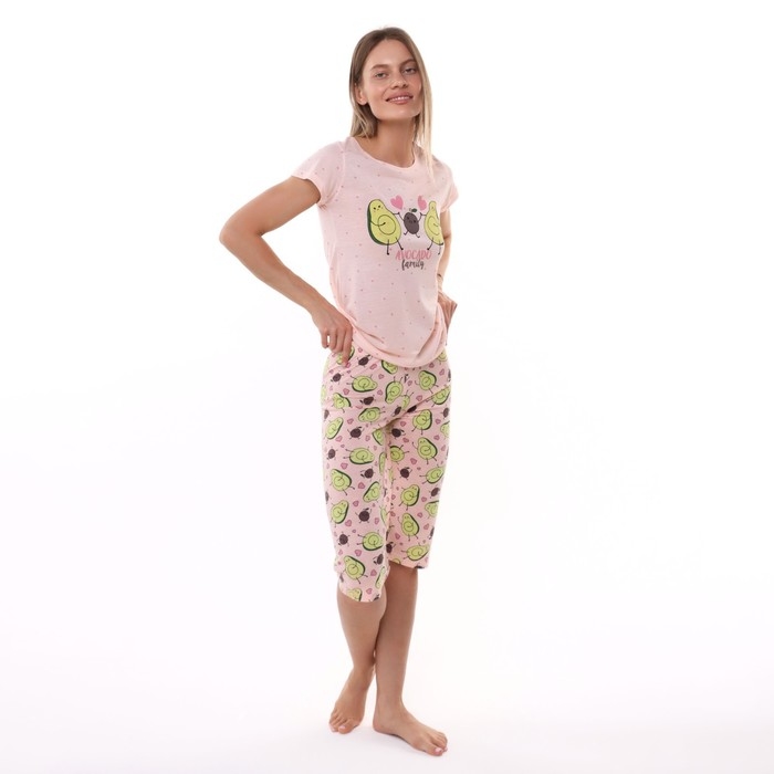 Комплект женский домашний (футболка/бриджи), цвет персиковый, размер 44