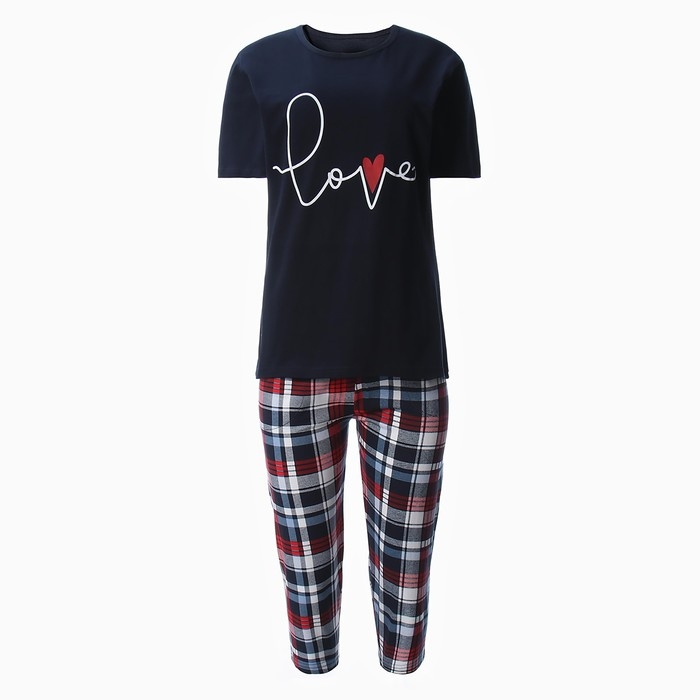Комплект женский домашний (футболка/бриджи), цвет тёмно-синий, размер 44