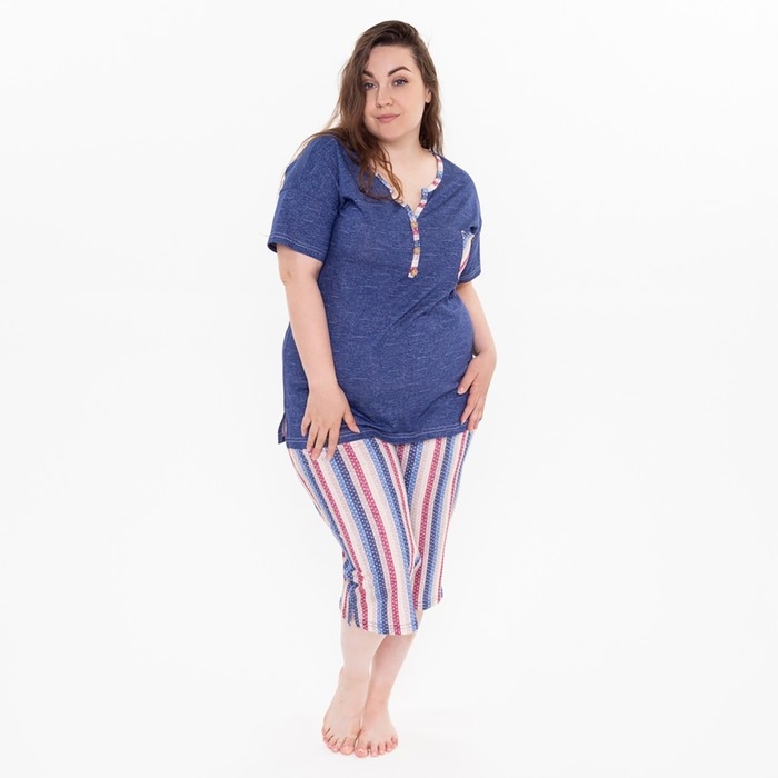 Комплект женский домашний (футболка и бриджи), цвет джинс, размер 50