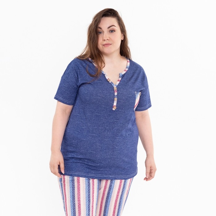 Комплект женский домашний (футболка и бриджи), цвет джинс, размер 54