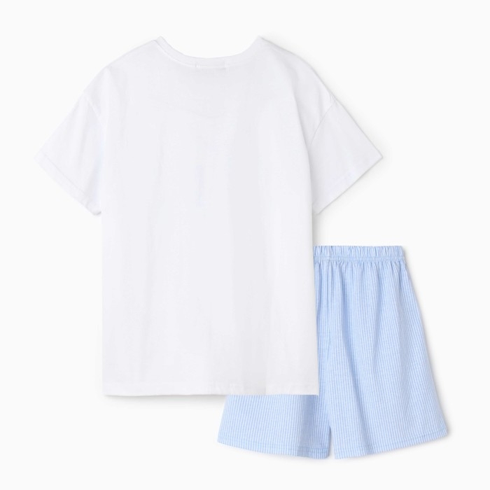 Комплект женский домашний (футболка/шорты), цвет белый/голубой, размер 44