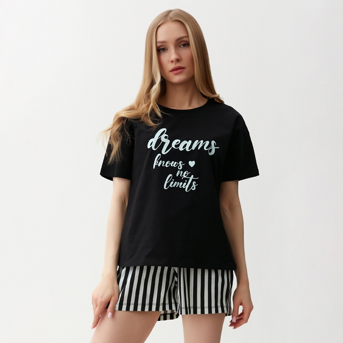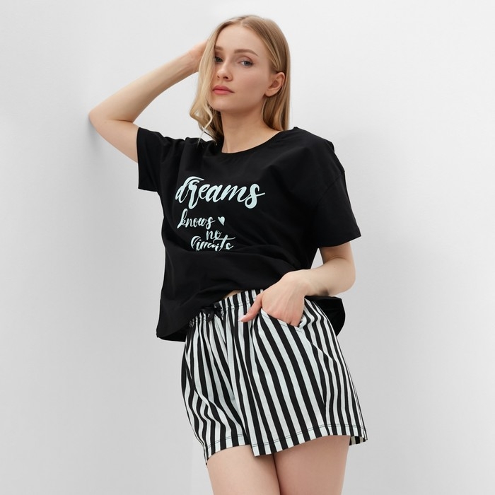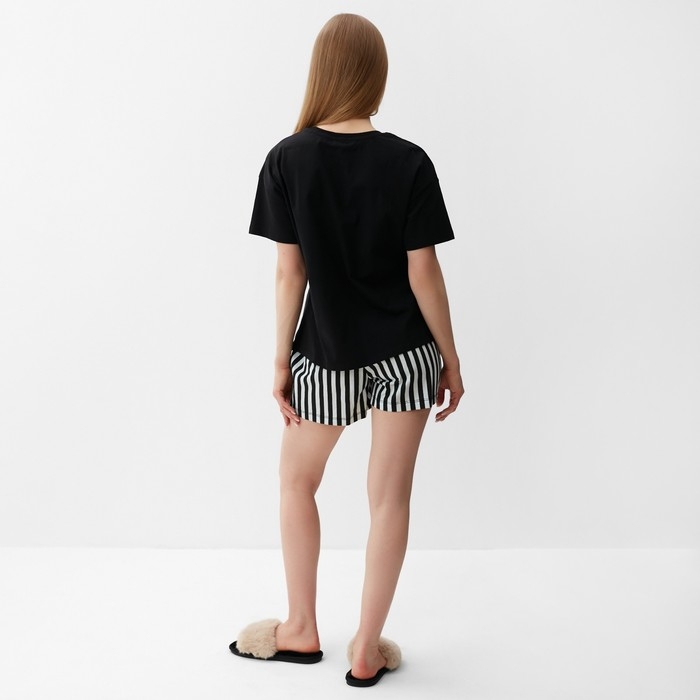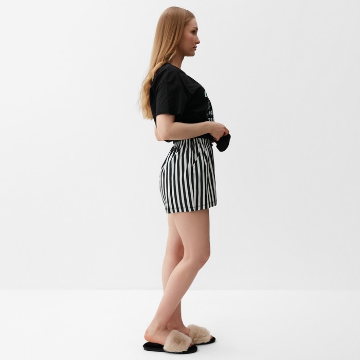 Комплект женский домашний (футболка,шорты), цвет черно-мятная полоска, р-р 50