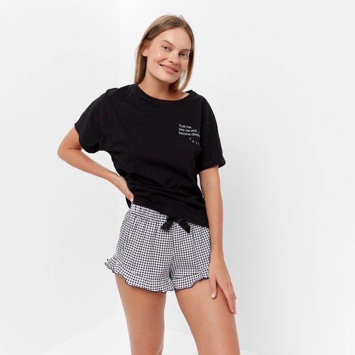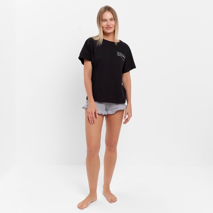 Комплект женский домашний (футболка/шорты), цвет чёрный, размер 54