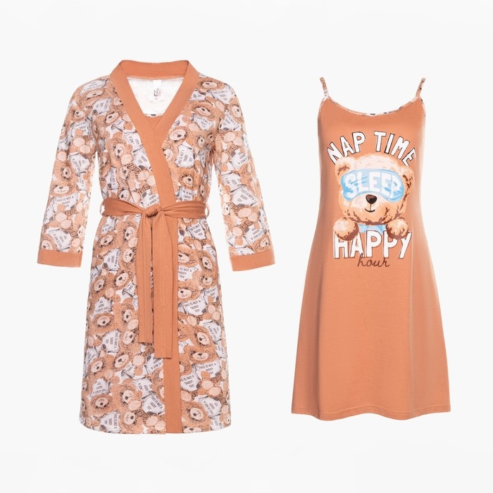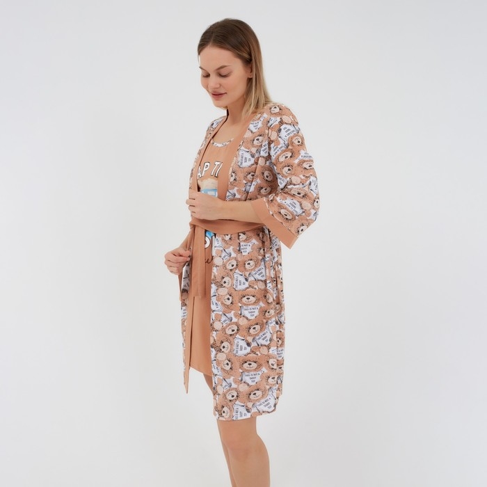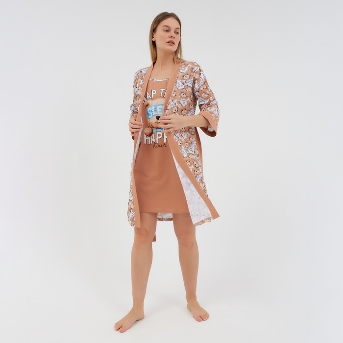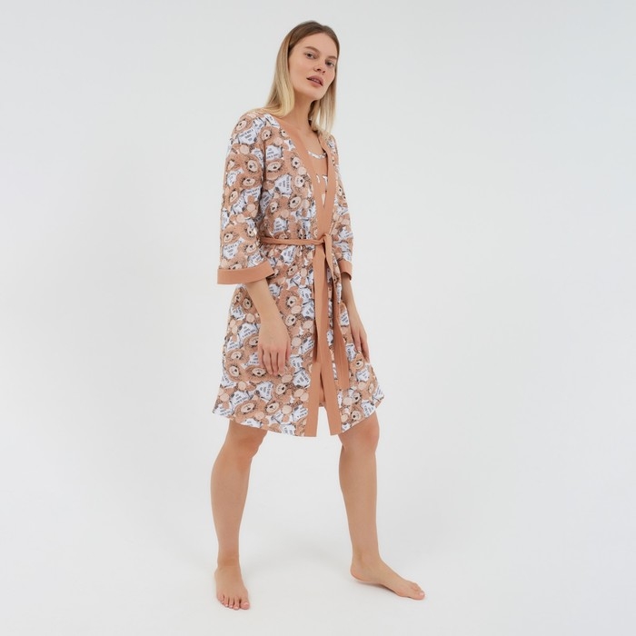 Комплект женский домашний (халат/сорочка), цвет бежевый, размер 52