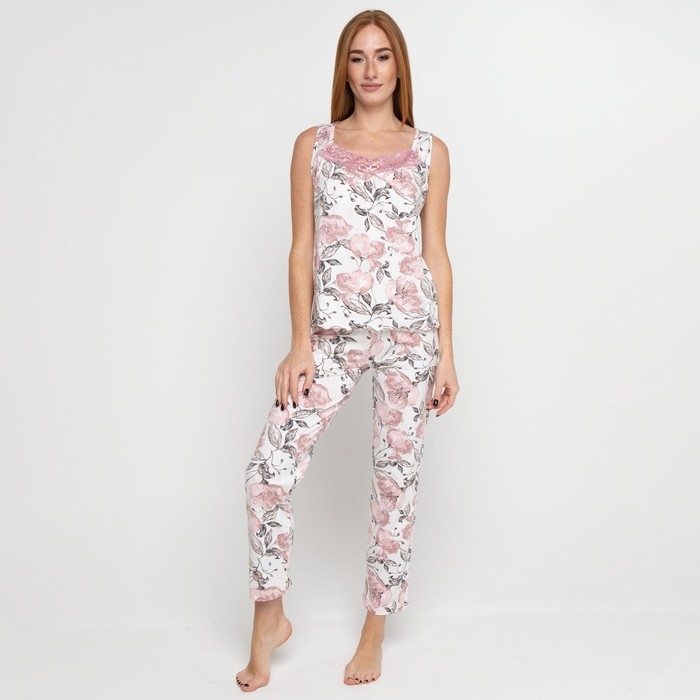 Комплект женский домашний (майка/брюки), цвет молочный, размер 42