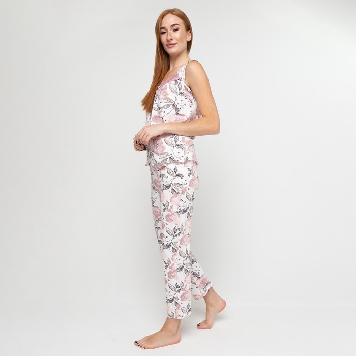 Комплект женский домашний (майка/брюки), цвет молочный, размер 44