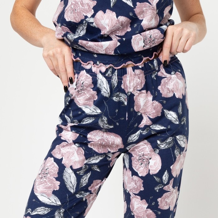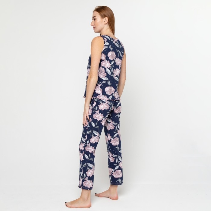 Комплект женский домашний (майка/брюки), цвет тёмно-синий, размер 46