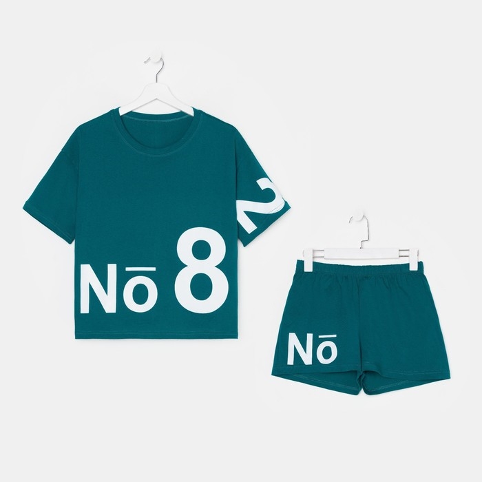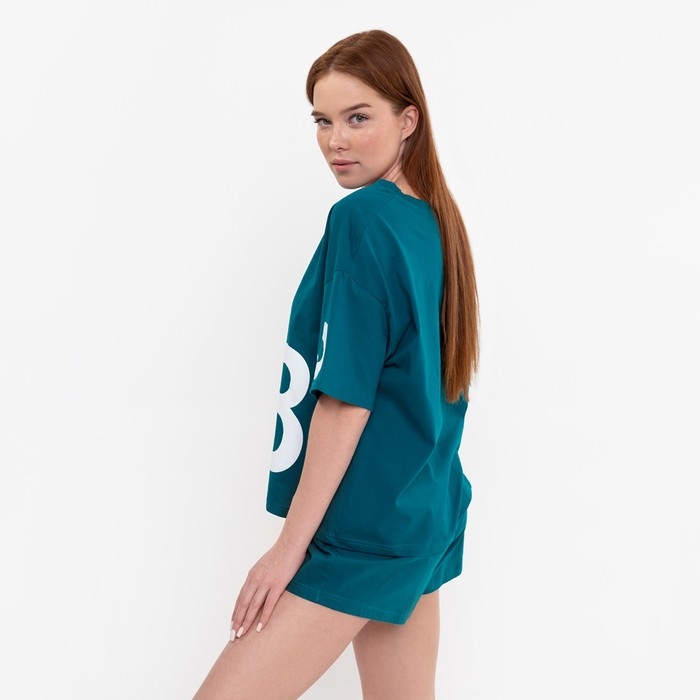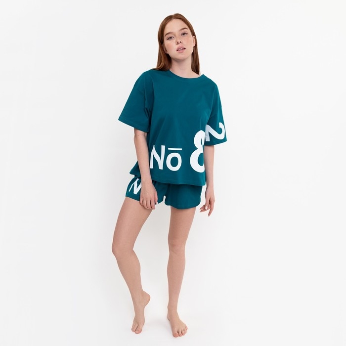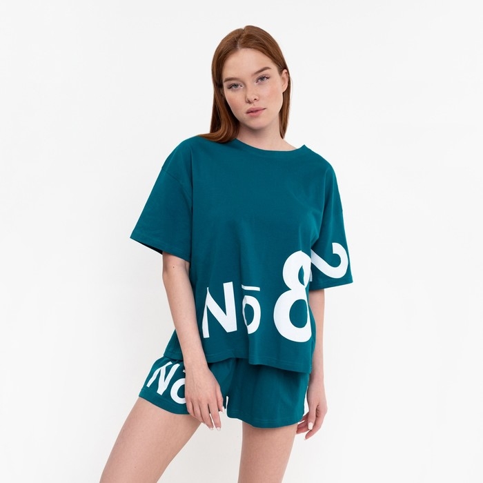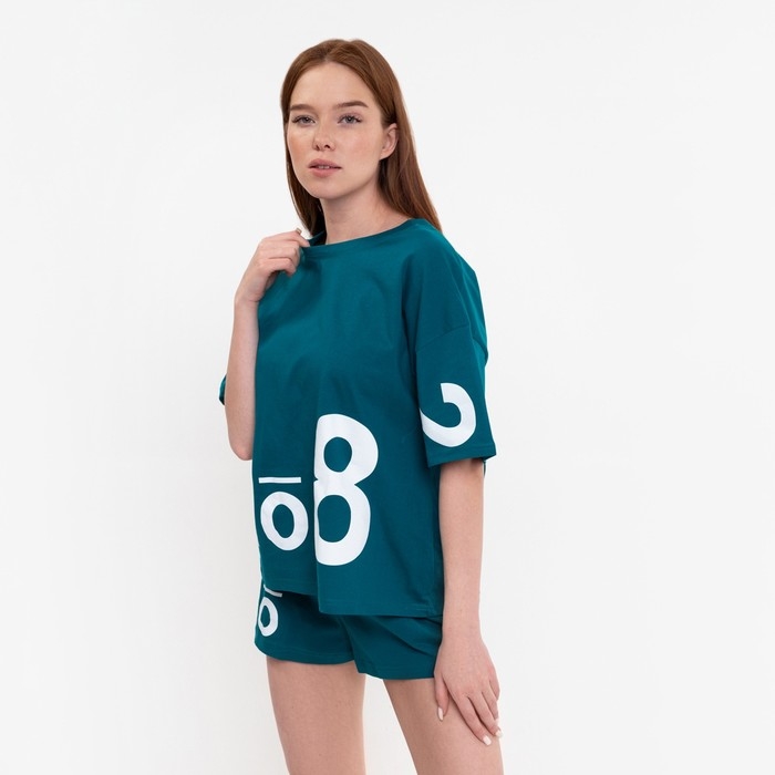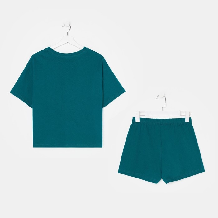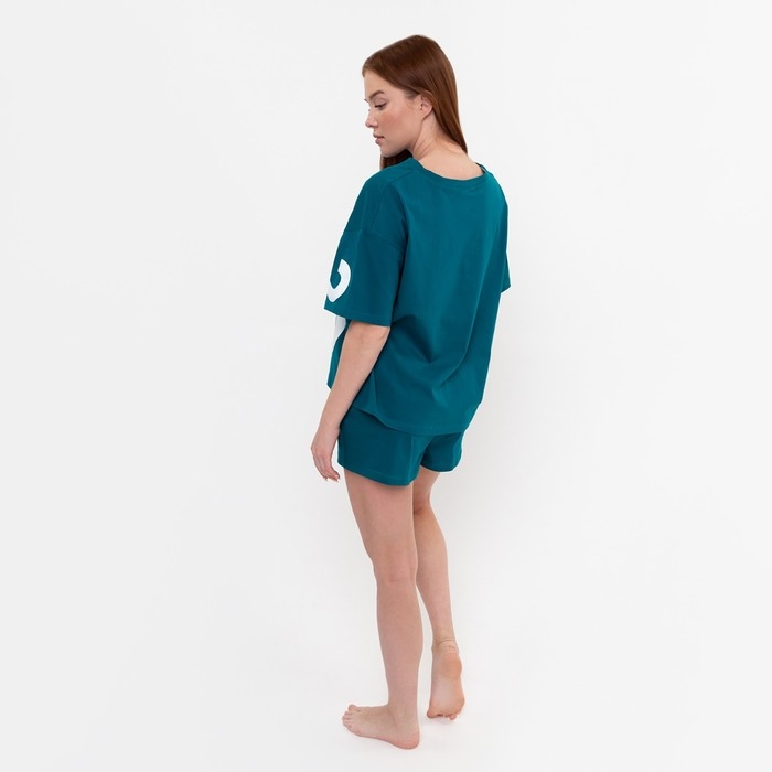 Комплект женский (футболка,шорты), цвет малахит, размер 48