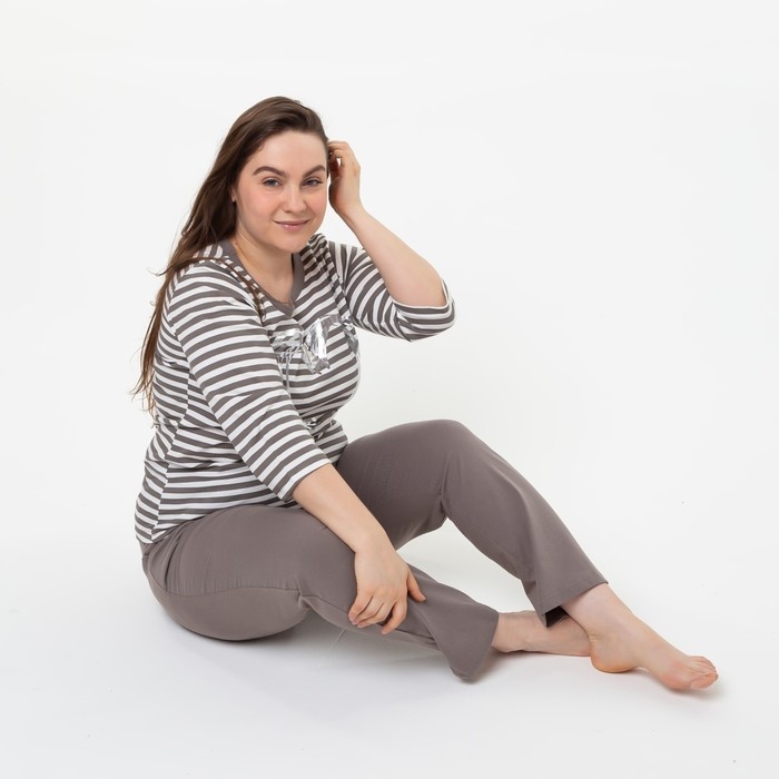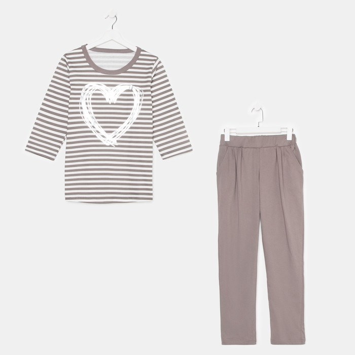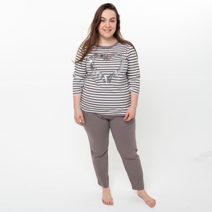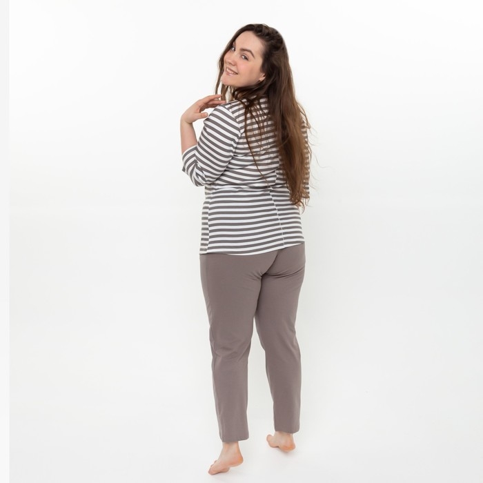 Комплект женский (лонгслив, брюки), цвет коричневый, размер 48