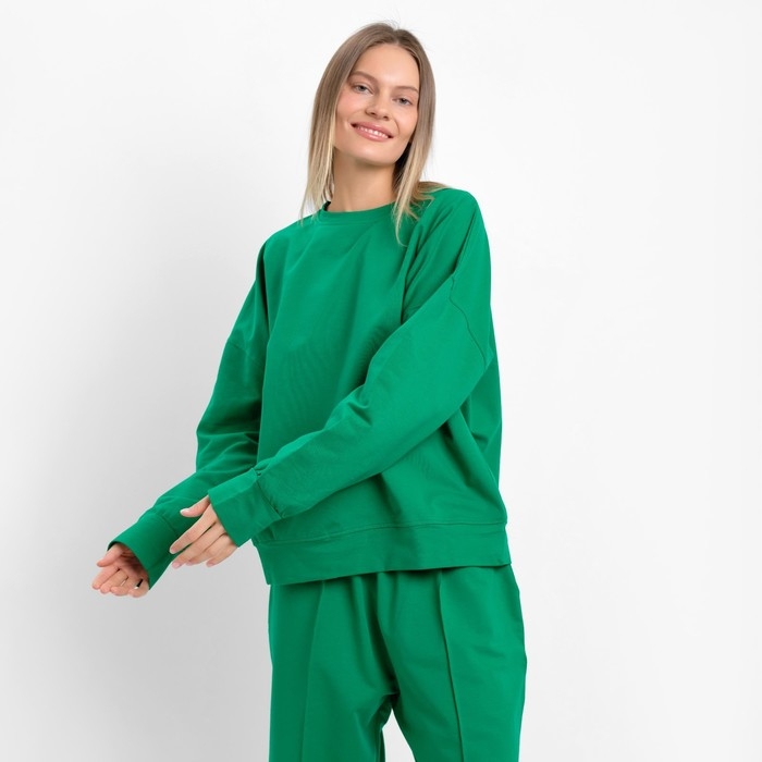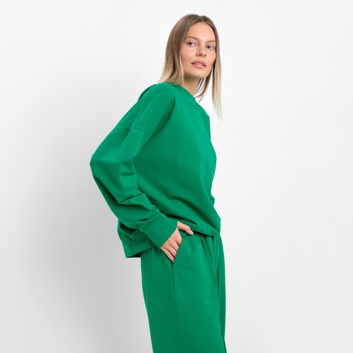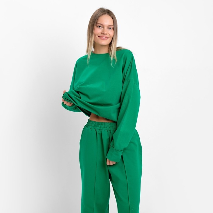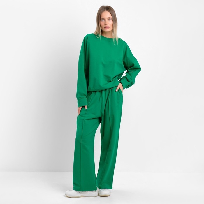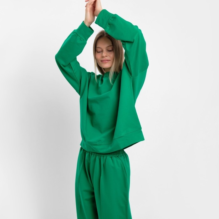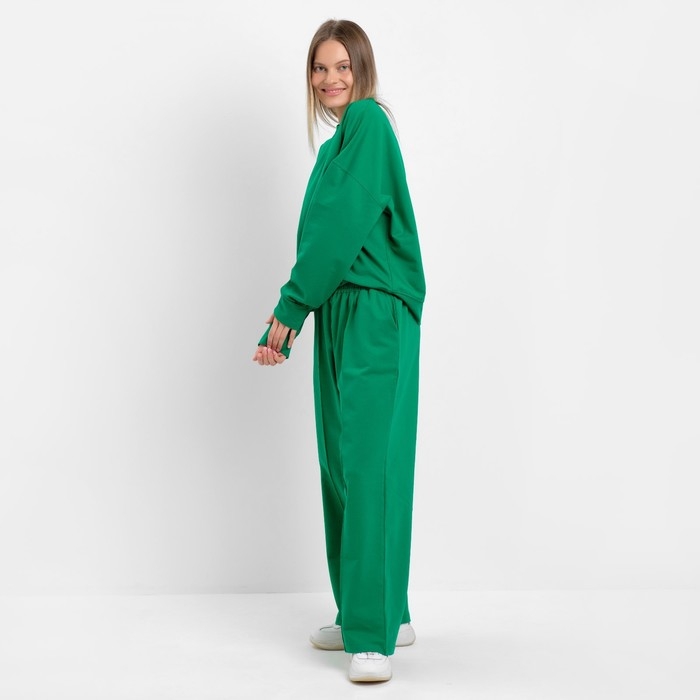 Комплект женский повседневный (свитшот и брюки), зеленый, размер 46-48