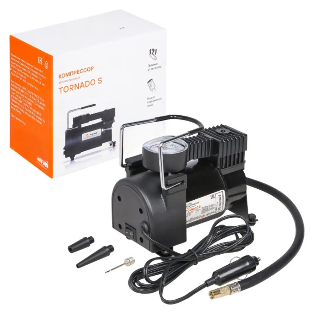 Автомобильный компрессор предназначен для получения сжатого воздуха в дорожных условиях. Компрессор модели TORNADO S имеет производительность до 30 л/мин с максимальным давлением 7 Атм (кг/см2). В данном компрессоре используется конструкция с плавающим шатуном, что увеличивает ресурс работы в 2-3 раза, по сравнению с более мощными "металлическими компрессорами". Время накачивания полностью спущенного колеса R14 до 2 Атм не превысит 4 минут. В комплекте 3 насадки.