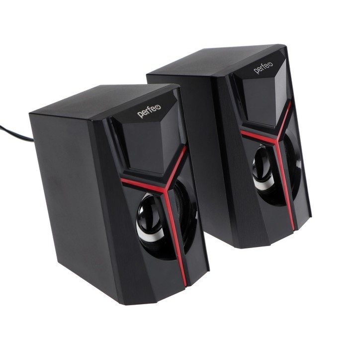 Компьютерные колонки 2.0 Perfeo Trial, 2х3, LED подсветка, чёрные