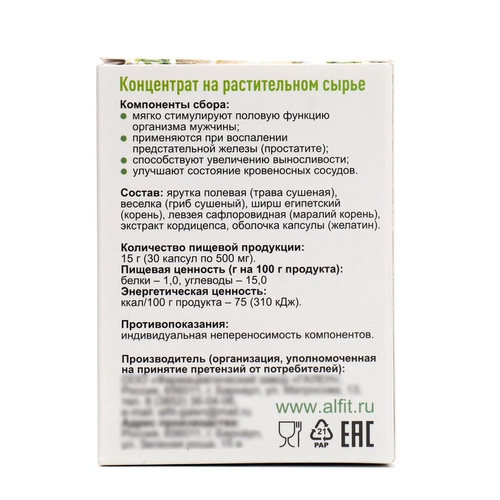 Концентрат на растительном сырье Весёлка с яруткой, 30 капсул по 500 мг