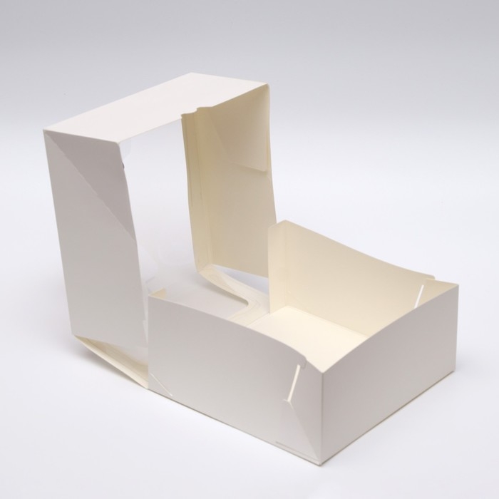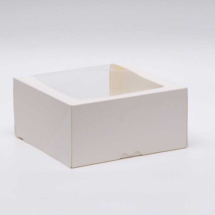 Коробка под торт, белая, с окном, 18 х 18 х 22 см