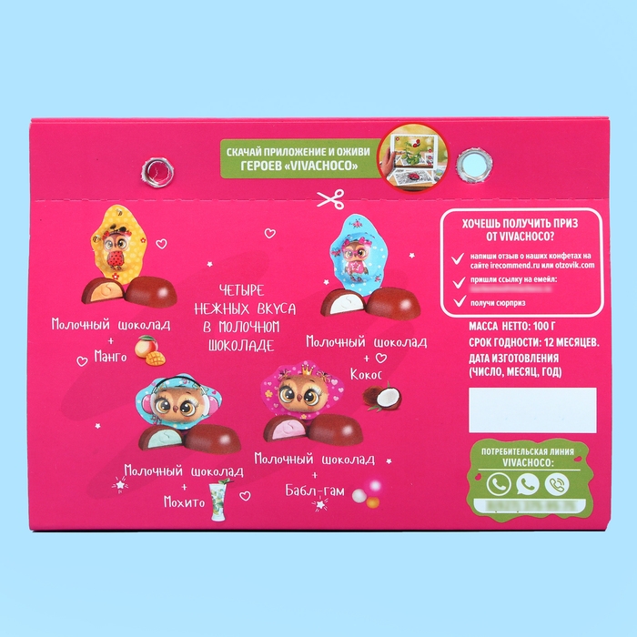 Каждая конфетка находится в индивидуальной оригинальной упаковке. Такое интересное ассорти можно подарить на любой праздник, а также использовать в качестве оформления сладкого стола на девичник. Конфетки с щедрой порцией какао и молока – отличный источник энергии и для маленьких непосед! Вкусные конфеты гарантированно поднимут настроение и принесут массу положительных эмоций. Также любой ребенок будет рад не только шоколадным конфетам, но и раскраске в качестве дополнительного подарка!