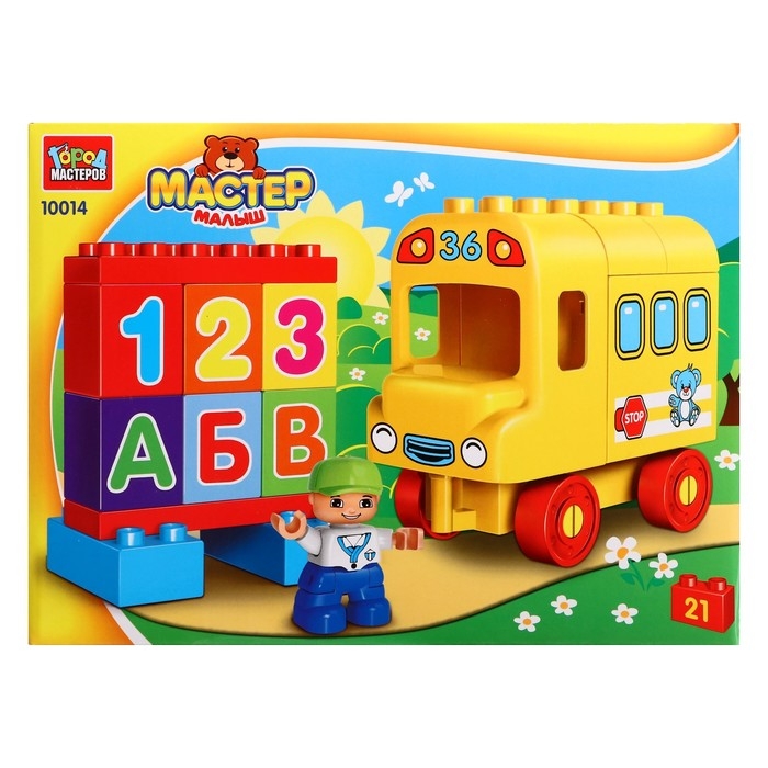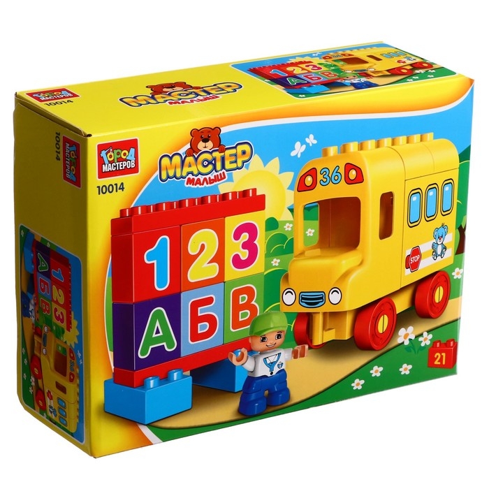 Конструктор «Автобус с буквами и цифрами», большие кубики, 21 деталь