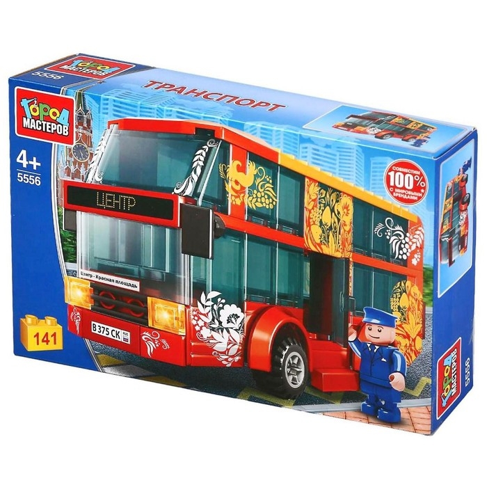 Конструктор автобус с минифигуркой Город мастеров Транспорт, 141 деталь, 4+