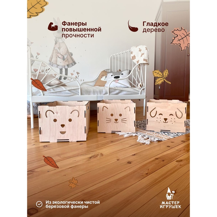 Конструктор «Ящик-Мордашки» — это деревянная модель, которая не только служит местом для хранения игрушек, но и становится стильным элементом декора детской комнаты.