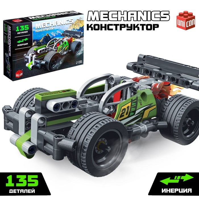 Конструктор гоночная машина UNICON Техно, инерционный, 135 деталей, 6+