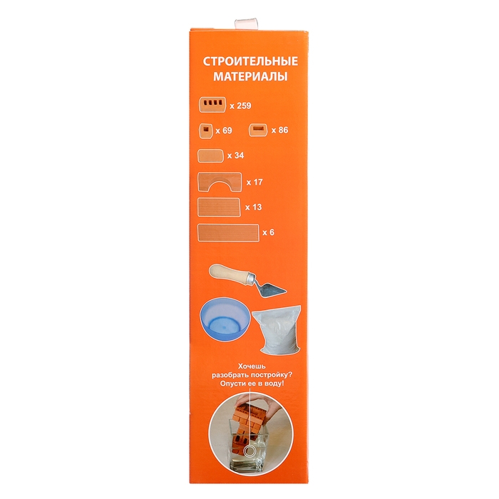 Специальный мастерок, входящий в комплект, поможет удобно нанести цемент на детали. Он точно такой, как у взрослых строителей, только меньшего размера.