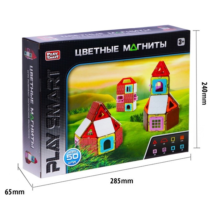 Конструктор магнитный «Цветные магниты», 50 деталей