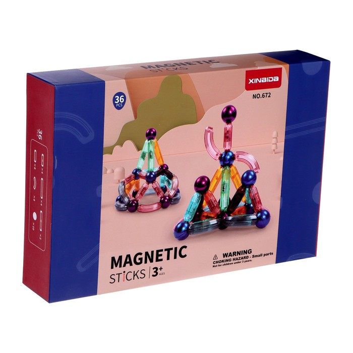 Конструктор магнитный для малышей «Магические палочки», 36 деталей