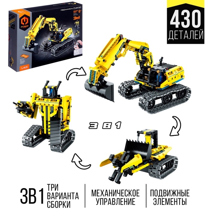 Конструктор радиоуправляемый «Строительный экскаватор», 3 варианта сборки, 430 деталей