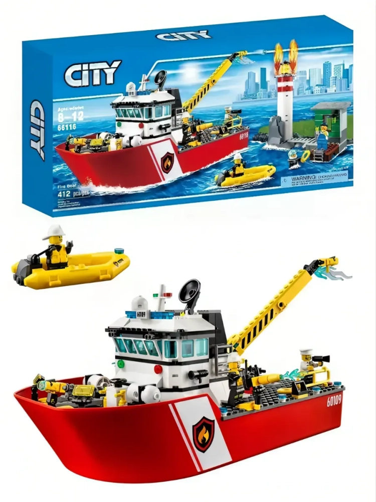 Сборка пожарного катера развивает у детей навыки решения проблем, моторику и способность к планированию. Этот набор также помогает детям узнать больше о работе пожарных и важности безопасности. Готовая модель будет отлично смотреться в коллекции Сити и может использоваться для игр или как экспонат. Совместим с лего, конструктор для мальчиков и девочек.